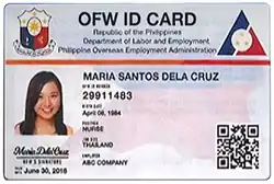 Official sample of an Overseas Filipino Worker (OFW) ID card