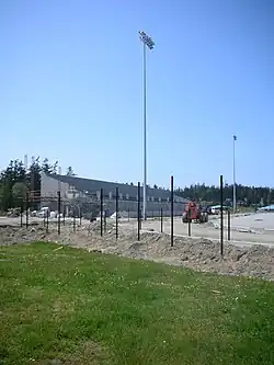 A new stadium to replace the aged Memorial Stadium was constructed in 2007 on the west end of the OHHS campus. The new stadium, dubbed "Wildcat Memorial Stadium," had its grand opening on September 7, 2007, eight months after construction began in January. The Wildcat Memorial Stadium was built by Ebenal General Contractors of Bellingham. The facility has a covered main grandstand with 2,500 home seats and a smaller covered grandstand with 500 visitor seats. The playing field is a FieldTurf surface and is encircled by a track and field oval. The stadium includes locker rooms, bathrooms, a concession area, and storage space.