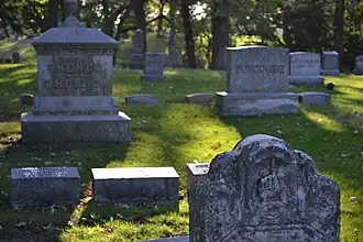 The Oakland Cemetery is a 40-acre (16 ha) public cemetery maintained by the city of Fort Dodge, Iowa, United States. Property for the cemetery was set aside in 1859. It was laid out the same year by Egbert Bagg, an architect and civil engineer from Utica, New York. The graves and monuments are arranged around the natural contours of the hills that overlook Soldier Creek in a natural park-like setting. It is considered a good and rare example of a rural cemetery in North Central Iowa.[2] It has been listed as an historic district on the National Register of Historic Places since 2000.[1]