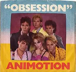 "Obsession" is a 1983 song by Holly Knight and Michael Des Barres, covered in 1984 by American synth-pop band Animotion. The song hit number six in the United States, and number five in the United Kingdom in June 1985, helped by a distinctive video that MTV played frequently. "Obsession" also hit the top 40 on the US dance chart, twice: once in 1984 (the single reached No. 35 the week ending November 24);[4] then in 1986, as a double-sided hit, along with the track "I Engineer".