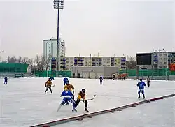 The settlement is also well known as one of the bandy centres of Russia. Many players from Obukhovo has become World Champions. Sportivny Klub Obukhovo[7] is the only club outside the highest division of Russian Bandy Super League to have an artificial ice.[8] Obukhovo has hosted several Youth World Championships. In February 2011 it was for Girls-17,[9] in December 2011 for Boys-23, in which the Russian team was victorious after beating Sweden after extra-time in the final[10] and in 2013 the same tournament.[11]