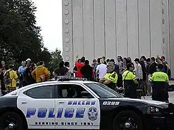 Occupy Houston is an ongoing occupation protest that stands in solidarity with Occupy Wall Street.[154] The planned occupation officially started in Houston, Texas, on Thursday October 6, 2011, when protesters returned from JP Morgan Chase Tower to establish an encampment at Hermann Square Plaza.[154][155] During the JPMorgan Chase demonstration there were not any confrontations with the police and numerous different passerby were reported to have sympathized with the tone of the protesters.[156][157] That same night the police were reported to have commented on how well behaved the protesters were.[158]