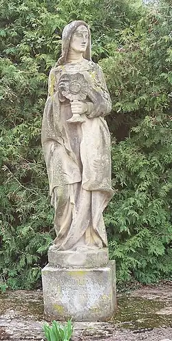 In the valley of the Musbach, a small river that runs near Freiburg im Breisgau, pilgrims have venerated St. Odile for centuries. In ca. 1300 a chapel was built; the present church was started in 1503 and finished in the 18th century. The church is built adjacent to a spring whose water contains radon, which was wrongly thought to be beneficial to eyesight.[7] In the 18th century the spring became part of the church building: in 1714 the source was included by enlarging the building, in 1780 the cave with the source in it was renovated and decorated in the fanciful style of the time.[8]