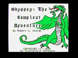 Odyssey: The Compleat Apventure is a video game written by Robert Clardy and released by Synergistic Software in 1980. It was created for the Apple II platform and is considered one of the first microcomputer-based role-playing video games. The title was intentionally misspelled; Apventure is a reference to the Apple computer while "Compleat" is simply an Archaic spelling of the word "complete" meant to match the feel and setting of the game.