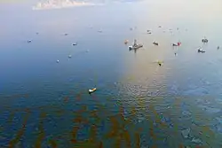 Oil spills, as well as daily oil runoff from urbanized areas, can lead to polycyclic aromatic hydrocarbon (PAHs) entering marine ecosystems. Once PAHs enter the marine environment, fish can be exposed to them via ingestion, ventilation of the gills, and dermal uptake.[10] The major route of uptake will depend on the behavior of the species of fish and the physicochemical properties of the PAH of concern. Habitat can be a major deciding factor for the route of exposure. For example, demersal fish or fish that consume demersal fish are highly likely to ingest PAHs that have sorbed to the sediment, whereas fish that swim at the surface are at a higher risk for dermal exposure. Upon coming in contact with a PAH, bioavailability will affect how readily the PAH is taken up. The EPA identifies 16 major PAHs of concern and each of these PAHs has a different degree of bioavailability. For instance, PAHs with lower molecular weight are more bioavailable because they dissolve more readily in water and are therefore more bioavailable for fish within the water column. Similarly, hydrophilic PAHs are more bioavailable for uptake by fish. For this reason, usage of oil dispersants, like Corexit, to treat oil spills can increase the uptake of PAHs by increasing their solubility in water and making them more available for uptake via the gills.[10] Once a PAH is taken up, the fish's metabolism can affect the duration and intensity of the exposure to target tissues. Fish are able to readily metabolize 99% of PAHs to a more hydrophilic metabolite through their hepato-biliary system.[10] This allows for the excretion of PAHs. The rate of metabolism of PAHs will depend on the sex and size of the species. The ability to metabolize PAHs into a more hydrophilic form can prevent bioaccumulation and halt PAHs from being passed on to organisms further up the food web. Because oil can persist in the environment long after oil spills via sedimentation, demersal fish are likely to be continually exposed to PAHs many years after oil spills. This has been proven by looking at the biliary PAH metabolites of bottom-dwelling fish. For instance, bottom-dwelling fish still showed elevated levels of low molecular weight PAH metabolites 10 years after Exxon Valdez oil spill.[10]