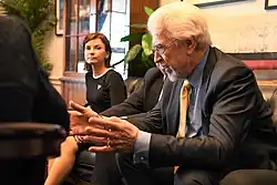 In 1993, Kalniņš was appointed Ambassador Extraordinary and Plenipotentiary of Latvia to the U.S. and Mexico.[8] During his tenure as ambassador, he focused on the withdrawal of Russian military forces from former Soviet bases in Latvian territory, as well as the strengthening of US and Latvian relations.[2] In 1994, Kalniņš greeted Bill Clinton at Rīga airport when he became the first United States president to visit a Baltic country on his way to a G7 meeting in Italy.[5] In 1998, Clinton signed the US-Baltic Charter,[9] which paved the way for Latvia's admission into NATO in 2004.[10] Kalniņš called the signing of the charter, "a culmination of the last six years of the extraordinary U.S.-Baltic relationship since independence."[11]