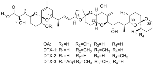 - ^ a b c Yasumoto, T.; Murata, M.; Oshima, Y.; Sano, M.; Matsumoto, G. K.; Clardy, J. (1985). "Diarrhetic shellfish toxins". Tetrahedron. 41 (6): 1019–1025. doi:10.1016/s0040-4020(01)96469-5.