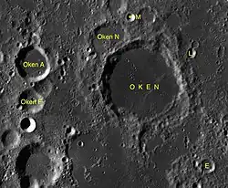 By convention these features are identified on lunar maps by placing the letter on the side of the crater midpoint that is closest to Oken.
