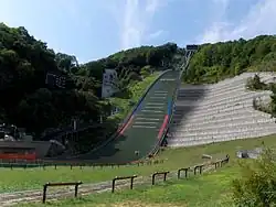 The Ōkurayama Ski Jump Stadium (大倉山ジャンプ競技場, Ōkurayama Janpu Kyōgijō), also known as the Ōkurayama-Schanze (大倉山シャンツェ, Ōkurayama Shantse) is a ski jumping venue located in the Miyanomori area in Chūō-ku, Sapporo, Hokkaidō, Japan. Owned mostly by Sapporo City,[1] the ski jump is on the eastern slope of the Mt. Okura. The stadium has hosted a number of winter sports events including 1972 Winter Olympics and FIS Nordic World Ski Championships 2007. The area of stadium consists of the Winter Sports Museum, the Ōkurayama Crystal House, and the Mt. Okura Observation Platform, as well as the ski jump.