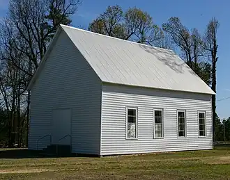 The Old Bethel Methodist Church, also known as the Old Bethel School, Church, & Cemetery, is a historic Methodist church, school and cemetery in rural Greene County, Arkansas. It is located on Highway 358,& Greene 712 Road in Paragould, Arkansas. It is a modest single-story wood-frame structure, built in 1901, and standing next to a cemetery established in 1882. The original Bethel Methodist Church was constructed in 1880, a small, onestory, white frame church. In 1900, a storm destroyed this building and in 1901 an almost identical building replaced the original structure. George Russell, a local carpenter, built the building using native materials of cypress and pine. It measures 20 feet by 40 feet and has a high pitched roof covered by tin. Exterior walls are covered with six inch beveled pine siding, while interior walls and ceiling are beaded pine wall board. Adjacent to it is a cemetery that dates to 1886.[2] The first person buried here was Moss Widner in 1882. The building served the small community of Finch as not just a church, but also as a school, and was vacated in 1941. It was restored in the 1970s by a group of local concerned citizens, and is occasionally used for services.[3]