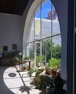 The home's artistic period began in the 1950s when American sculptor John La Farge bought it and renovated it. He removed parts of the deteriorated roof and glazed the retaining arch to create a large window, opening into a private courtyard. La Farge's arch, together with three large elegant windows,[3] became the signature architectural feature of the house. In 1976, painter Kristina Colloredo-Mansfeld purchased the house.[5] In 2015, the current owner, Stephan Colloredo-Mansfeld, turned the lower part of the house into a recording studio, incorporating the acoustics of high ceilings and water cisterns.[6]