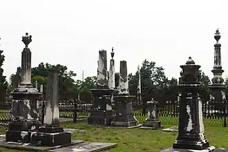 The Old City Cemetery, also known as Linwood Cemetery, is a 28.7-acre (11.6 ha)[1] cemetery on what is now Linwood Boulevard, in Columbus, Georgia. It dates from 1828, when the town of Columbus was founded, or before. It appears in surveyor Edward Lloyd Thomas's original plan for the city. The cemetery consists mostly of rectangular family plots bordered by iron fences or walls made of brick or granite, accessed by a main east-west corridor and perpendicular lanes. It includes both simple and elaborate tombstones, some displaying Egyptian Revival or Gothic styles.[2]