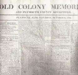 - ^ Old Colony Memorial, and Plymouth County Advertiser, Vol. 1, no. 1 (May 4, 1822). Library of Congress. "About Old Colony memorial, and Plymouth County advertiser. (Plymouth, Mass.) 1822-1827". Chronicling America: Historic American Newspapers. Retrieved April 22, 2012.