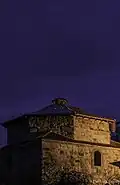 Gazi Ali Bey Hamam is located in the old city center of Vushtrri, and was built by Gazi Ali Bey at the turn of the 14th and 15th centuries. Public baths were included for both sexes. The technically sophisticated building is an example of a "Tek" hamam, including a large lobby covered by a massive octagonal dome, a second room for heating and cleaning, and two alcoves paved with white marble for each gender to bathe. A kurna (stone bath) in each alcove was supplied by the central hot water tank. The women's alcove is similar in design to that in the Hamam of Peja. Clearly, the structure was built in two stages: the original floor and the three lower domes, the first; followed by the outer entryway of volcanic tuff dating to the 17th century and spanning the entire perimeter of the building.[2] Unused since the 1970s, the facility was renovated with a focus on its façade and cupola from August 2013 to May 2014.[3]