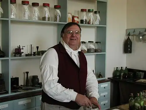 The town's restored and reconstructed buildings, staffed by living-history interpreters, present visitors with a view of Moravian life in the 18th and 19th centuries. The features include skilled interpreters such as tinsmiths, blacksmiths, cobblers, gunsmiths, bakers and carpenters, practicing their trades while interacting with visitors. Approximately 70% of the buildings in the historic district are original.