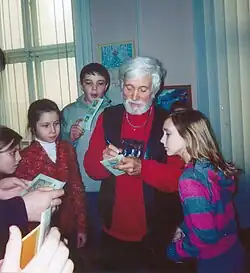 Starting from the 1990s, the artist collaborated with publishers. In 1991, the publishing of "Molod'" (Ukrainian for 'Youth') is working on a magazine "Sunflower" for primary school age – 1991, No. 2 . After becoming acquainted with Ivan Malkovich, he illustrated books for his publisher "A-BA-BA-HA-LA-MA-HA" – "Oh, you, cat Mark" (1993), "The Candle of the snow" .[3]