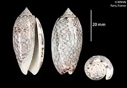 | Shell of Oliva tisiphona (specimen at MNHN, Paris) | |