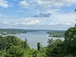 The location of the house provides sweeping views of the Hudson River much prized by the Hudson River school painters.[3] The view from the house encompasses the river, the historic Hudson Athens Lighthouse, the town of Athens, New York (directly across the river to the west) and the Catskill Mountains in the distance. The house is located on Mount Merino Road which was named for merino sheep which were bred on the prominent hill, "Mount Merino," for wool. In 1810-1811 merino sheep were first offered for sale in the area designating the location as "Mount Merino," this was the first mention of this name for the mountain previously called "Rorabuck"[4] The Greenport Conservation Area is land that once formed part of Wiswall's holdings on the mount.