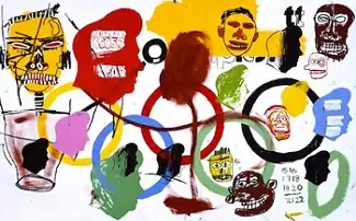 Olympics is a painting created by American artists Jean-Michel Basquiat and Andy Warhol in 1984. The artwork was a commemoration of the 1984 Summer Olympics. It sold for $10.5 million at Phillips's Contemporary Art Evening Sale in June 2012, which at the time was a record high for a Warhol-Basquiat collaboration.[1][2] It is the second most expensive Warhol-Basquiat collaboration sold at auction after Zenith (1985).[3]