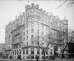 The first Shoreham Hotel was constructed in 1887 by Vice President of the United States Levi P. Morton. It was designed by the New York firm of Hubert, Pirrson & Company and was located at 15th and H Streets NW. Morton named the hotel for his birthplace, Shoreham, Vermont. The hotel was expanded in 1890 and extensively renovated in 1902 and 1913. The Shoreham went bankrupt in 1927 and was sold to developer Harry Wardman, who demolished the hotel in 1929 and replaced it with the Shoreham Office Building, designed by Mihran Mesrobian.[2] That structure was itself converted to a hotel in 2002, becoming the Sofitel Washington DC Lafayette Square.[3]