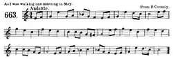 "As I Was Walking One Morning in May" appears as an Irish air in Stanford's 1905 edition of George Petrie's collection, bearing the attribution "From P. Coneely".[26] Its relation to extant ballads called "One Morning in May" is unclear.