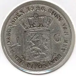 The Dutch One guilder coin struck under the reign of King William II was a unit of currency in the Netherlands.[1][2]
