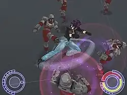 Oni is a third-person action video game developed by Bungie West, a division of Bungie. It was originally released by Gathering of Developers for Microsoft Windows and Mac OS in 2001; a PlayStation 2 port developed by Rockstar Canada was released the same year. It was Bungie West's only game. Its gameplay consists of third-person shooting with hand-to-hand combat, with a focus on the latter. The game's style was largely inspired by Ghost in the Shell and Akira and shares the same genre, being set in a cyberpunk world.