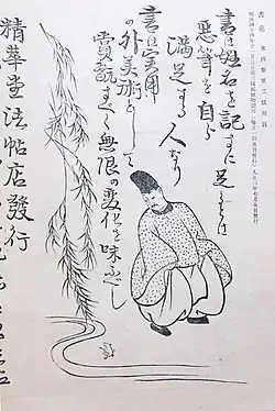 Ono no Michikaze or Ono no Tōfū (小野 道風; 894 – February 9, 966) was a prominent shodōka (Japanese calligrapher) during the Heian period (794–1185). One of the so-called Sanseki 三跡 (Three Brush Traces), along with Fujiwara no Sukemasa and Fujiwara no Yukinari, Michikaze is considered the founder of Japanese-style calligraphy or wayōshodō (和様書道).[1] He is popularly extolled in Japan as the "reincarnation of Wang Xizhi".