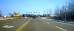 On May 15 2009, Minister of Transportation Jim Bradley announced that the section from Port Robinson road to East Main Street in Welland would be converted to a full freeway;[26] this work included a roundabout at East Main Street to replace the existing signalized intersection.[27] Work on the Merritt Road overpass began in September 2009,[9] and was scheduled for completion in mid-2011.[28] On August 19, 2011, full construction began with a groundbreaking ceremony.[29] The roundabout with East Main Street opened to traffic on September 5, 2013, featuring no central island. The existing signalized junction at Woodlawn Road was repurposed for the southbound off-ramp and on-ramp, as continuous Highway 406 traffic was rerouted upon new overpasses. By September 2015, all the at-grade intersections had been removed and Highway 406 was a minimum four-lane, controlled-access freeway for its entire length.[30] Despite requests from local politicians, there are no plans to extend Highway 406 to Port Colborne at this time.[27]