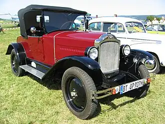 At the end of 1928 the claimed maximum power from the engine increased to 20 PS (14.7 kW) at 3,500 rpm which pushed the listed top speed up to 77 km/h (48 mph). This was accompanied by a further change in the carburetor specification. Three-seater bodies had by now disappeared from the list, but a new 2+2 cabriolet was introduced in 1930.[13]
