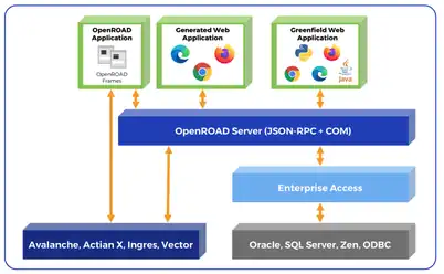 The OpenROAD Server enables business logic written in the OpenROAD 4GL language to be accessed by client applications. The OpenROAD Server is multi-threaded and allows concurrent access from a number of client interfaces. These client interfaces include the following:[3]