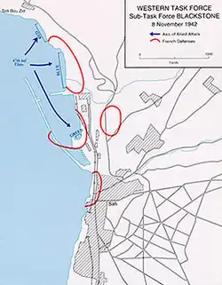Safi surrendered on the afternoon of 8 November, but sporadic resistance continued until 10 November when the remaining defenders were pinned down and the bulk of Harmon's forces raced to join the siege of Casablanca.[2][3]