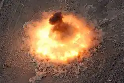 The CIA's response was another distraction. To begin Operation Moonmark, the CIA arranged for the U.S. Air Force to use one of its C-130 Hercules to drop a BLU-82 bomb to blast a helicopter landing zone (HLZ). Several helicopters flew in, a team dropped into the HLZ long enough to scatter cigarette butts, old packing crates, and litter about to simulate an insertion, then were pulled out by the helicopters. For the next week, Air America Twin Otters overflew the phony HLZ dropping bogus parachutes and broadcasting helicopter racket. Thus the 15,000 lb (6,800 kilo) bomb served as a second diversion to the diversion.[8]