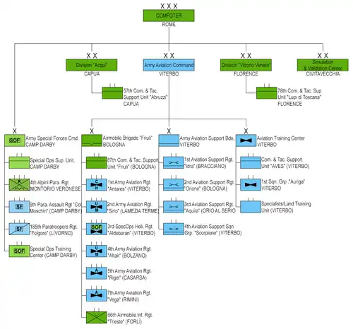 - ^ a b c "Comando delle Forze Operative Terrestri e Comando Operativo Esercito - Esercito Italiano". www.esercito.difesa.it (in Italian). Esercito Italiano. Retrieved 27 July 2020.