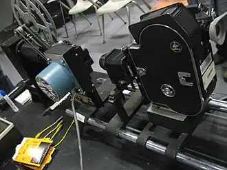 An optical printer is a device consisting of one or more film projectors mechanically linked to a movie camera. It allows filmmakers to re-photograph one or more strips of film. The optical printer is used for making visual effects for motion pictures, or for copying and restoring film material.[1]