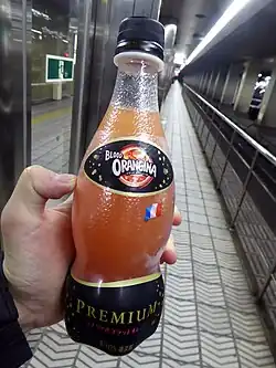 Orangina (French pronunciation: [ɔʁɑ̃ʒina]) is a lightly carbonated beverage made from carbonated water, 12% citrus juice (10% from concentrated orange, 2% from a combination of concentrated lemon, concentrated mandarin, and concentrated grapefruit juices), as well as 2% orange pulp.[1][2] Orangina is sweetened with sugar or high fructose corn syrup (glucose fructose) and in some markets (such as the United Kingdom) with artificial sweetener. Natural flavours are also added.[3]