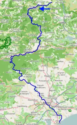 The Orb (French pronunciation: [ɔʁb]; Occitan: Òrb) is a 135.6-kilometre (84.3 mi) long river in the department of Hérault in the south of France.[1] It flows into the Mediterranean Sea at Valras-Plage. The river flows through the towns of Bédarieux and Béziers, where it is crossed by the canal du Midi on the Orb Aqueduct.