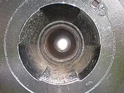 The guns were rifled breech-loading weapons with a cast iron body, hooped with wrought iron, and with a steel tube screwed in place that contained the breechblock and extended just forward of the trunnions. The Ordóñez guns captured at Havana were all 35 to 36 calibers in length.[3]) The breechblocks were lever-actuated, and of the French or interrupted screw type, though the obturating ring followed the Krupp design.[4] The guns appear to have been mounted en barbette, rather than on a disappearing carriage.