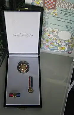 The Order of Ban Jelačić (Croatian: Red bana Jelačića) is the 10th most important medal given by the Republic of Croatia. The order was founded on April 1, 1995. The medal is awarded for excellence in the Armed Forces of the Republic of Croatia.[1] It is named after the ban of Croatia Josip Jelačić.