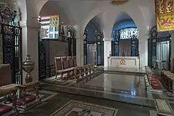 In May 1957, forty years after the foundation of the order, it was announced that St Paul's Cathedral was to serve as the church of the order, and in 1960 a chapel was dedicated for its use within the crypt of the cathedral.[10] That year, Commonwealth awards made up 40% of all OBEs and MBEs awarded (and 35% of all living recipients of the higher awards).[12] Gradually that proportion reduced as independent states within the Commonwealth established their own systems of honours. The last Canadian recommendation for the Order of the British Empire was an MBE for gallantry gazetted in 1966, a year before the creation of the Order of Canada. On the other hand, the Australian Honours System unilaterally created in 1975 did not achieve bi-partisan support until 1992, which was when Australian federal and state governments agreed to cease Australian recommendations for British honours; the last Australian recommended Order of the British Empire appointments were in the 1989 Queen's Birthday Honours. New Zealand continued to use the order alongside its own honours until the establishment of the New Zealand Order of Merit in 1996.[13] Other Commonwealth realms have continued to use the Order of the British Empire alongside their own honours.[5]