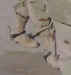- b. Boots: The spurs will be affixed to the footgear so that the U shaped portion follows the seam of the ankle support. The strap will be fastened over the instep of the footgear in such a manner that the buckles face the outside of the boot.