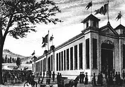 The state fairground is the site of two historic buildings listed on the National Register of Historic Places: the Oregon State Fair Stadium and Poultry Building Ensemble. The 1919 horse stadium and the 1921 poultry building were added to the register in 2002.[5][6] The poultry building is known for the "chicken head" relief sculptures that decorate the exterior. The horse stadium is the oldest state building in Oregon in continuous use.[7]