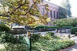 The oldest section of campus is in the northwest area of the current campus. The university's first building, University Hall, opened on October 16, 1876, when the university had an enrollment of 177 students. It was known as "the building" before being named after Judge Matthew Deady in 1893. In June 2020, Deady's name was removed from the building in and it was temporarily renamed University Hall.[84] The second building on campus is known as Villard Hall and is home to the Theater Arts and Comparative Literature Departments. Completed in 1886, the hall was named after railroad magnate Henry Villard, who provided financial aid to the university in 1881. Before its naming, it was known as "the new building". Both University and Villard Halls were designated National Historic Landmarks in 1977.[85]