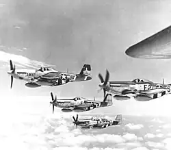 Specialised, independent Gruppen or Staffeln sometimes sat below the level of a Fliegerkorps.[10] A Schwarm (plural Schwärme; literally "swarm"), consisted of four to six aircraft within a Staffel. A bomber Schwarm (at full strength, six aircraft) was divided into a Kette ("chain") of three aircraft. As such, a bomber Schwarm was equivalent to a flight in the Western Allied air forces. A Kette was also the term used for a "v" formation.[18][19]