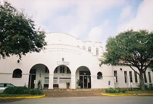 The station was built in 1926 by A.M. Griffin and W. T. Hadlow for the Atlantic Coast Line Railroad (ACL). The building was designed in the Spanish Mission style. It became part of the Seaboard Coast Line Railroad after the Coast line merged with the Seaboard Air Line Railroad in 1967.[4]