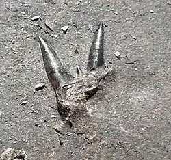Orthacanthus and Triodus have a predator-prey relationship in which Orthacanthus preyed on Triodus.[15] Cranial remains of specimens of both Orthacanthus and Triodus from the Upper Carboniferous in Puertollano basin, Spain, give evidence of this predator-prey relationship.[15] Numerous and well preserved cephalic elements of Triodus were associated with the cranial remains of Orthacanthus, and is explained by the inclusion of occipital spines of Triodus in the buccal cavity of Orthacanthus.[15] Additional evidence is the co-occurrence of one Orthacanthus spine with many Triodus spines, which likely penetrated the soft tissue and cartilage of the mouth of Orthacanthus, similarly to modern sharks that feed on stingrays where the spines of stingrays have been found within and around the buccal cavities of Carcharhinus, Galeocerdo, Negaprion and Sphyrna.