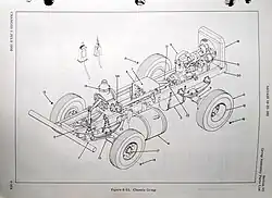 The MB-5 featured 4-wheel drive, with no-slip differentials on the rear axle. The Marine Corps variants of the truck featured no-slip differentials on the front axle assembly as well. The full floating axles sat on leaf spring suspension, mounted to both the front and rear of the frame.[3] While unloaded, the truck's suspension was quite rigid; and there was even a noticeable tilt to the left side which compensated for the extra weight when the water tank was full.