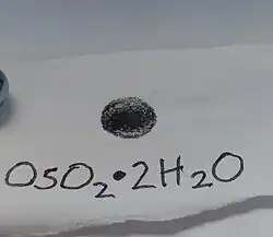 It can also be prepared by reducing osmium in higher oxidation states with alcohol, in which it forms a dihydrate. As opposed to the anhydrous dioxide, the dihydrate possesses a bluish black appearance.[6][7]
