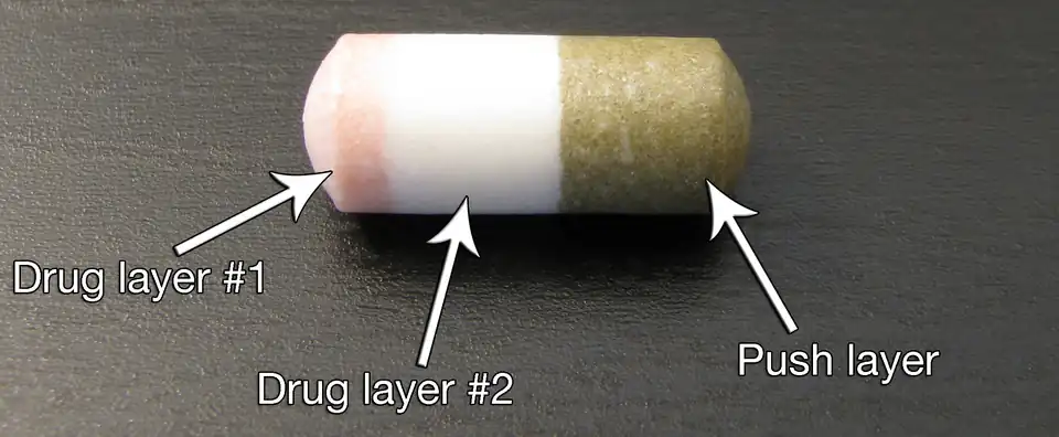 - ^ a b c d e f g h i j k Malaterre, V; Ogorka, J; Loggia, N; Gurny, R (November 2009). "Oral osmotically driven systems: 30 years of development and clinical use". European Journal of Pharmaceutics and Biopharmaceutics. 73 (3): 311–23. doi:10.1016/j.ejpb.2009.07.002. PMID 19602438.