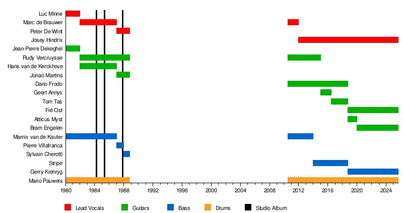 - Mario "Grizzly" Pauwels – drums (1980–1988, 2002, 2010–present)